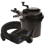 The PondMAX CW750 Clear Water Pump and Filter Kit makes installing your new filtration system very easy. This is a complete pump and filter system that offers the perfect solution for ponds up to 750 gallons that do not contain fish and 375 gallons for garden ponds with fish. Each water pump and filter kit also includes a Bonus PondMAX Clarifier Bacteria for FREE. This pond filter and pump comes with a pressure filter that includes a nine watt UV-C, a filtration and waterfall pump, a 25 foot non-kink pond hose, four stainless steel hose clamps, and eight ounces of the PondMAX BactiMax Bacteria Clarifier. The max flow for this pump and filter kit is 1000 GPH. When you purchase a pond filter and pump together, you will ensure that your garden pond is well oxygenated and you will be helping to prevent algae from growing in your pond. With the PondMAX CW750 Clear Water Pump and Filter Kit, your pond maintenance will be easy, and your pond water will stay clear and beautiful.